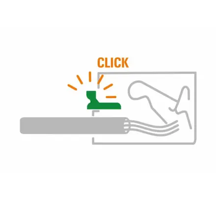 A lecsupaszított vezeték egyszerűen és biztonságosan a csatlakozási pontba illeszthető, további előkészítés nélkül.
