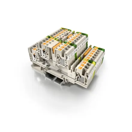 Az érzékelők és a működtetők biztonságosan és gyorsan vezetékezhetők egy csettintésnyi idő alatt. A kompakt Klippon® Connect biztosíték és leválasztó sorkapocsblokkok most már az innovatív SNAP-IN csatlakozástechnikával is elérhetők. A sorkapocsblokkok speciális jellemzője a keresztösszekötési opciók széles köre, amelyek a különálló vagy biztonsági terület előtt és mögött helyezkednek el. Maximális rugalmasságot kínálnak potenciálok vagy jelek könnyű és megbízható többszörösítéséhez – tökéletesen igazodnak a növekvő igényekhez és a jelek sokféleségéhez a korszerű kapcsolószekrény-gyártásban.