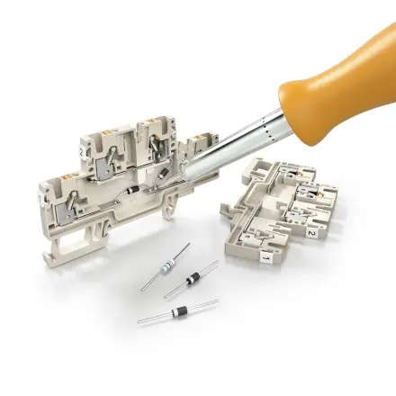 Az elektronikus alkatrészek beépíthetők az alap moduláris sorkapcs különféle verzióiba az adott alkalmazásnak megfelelően. Számos, könnyen hozzáférhető érintkezőpont lehetővé teszi az alkatrészek forrasztását.